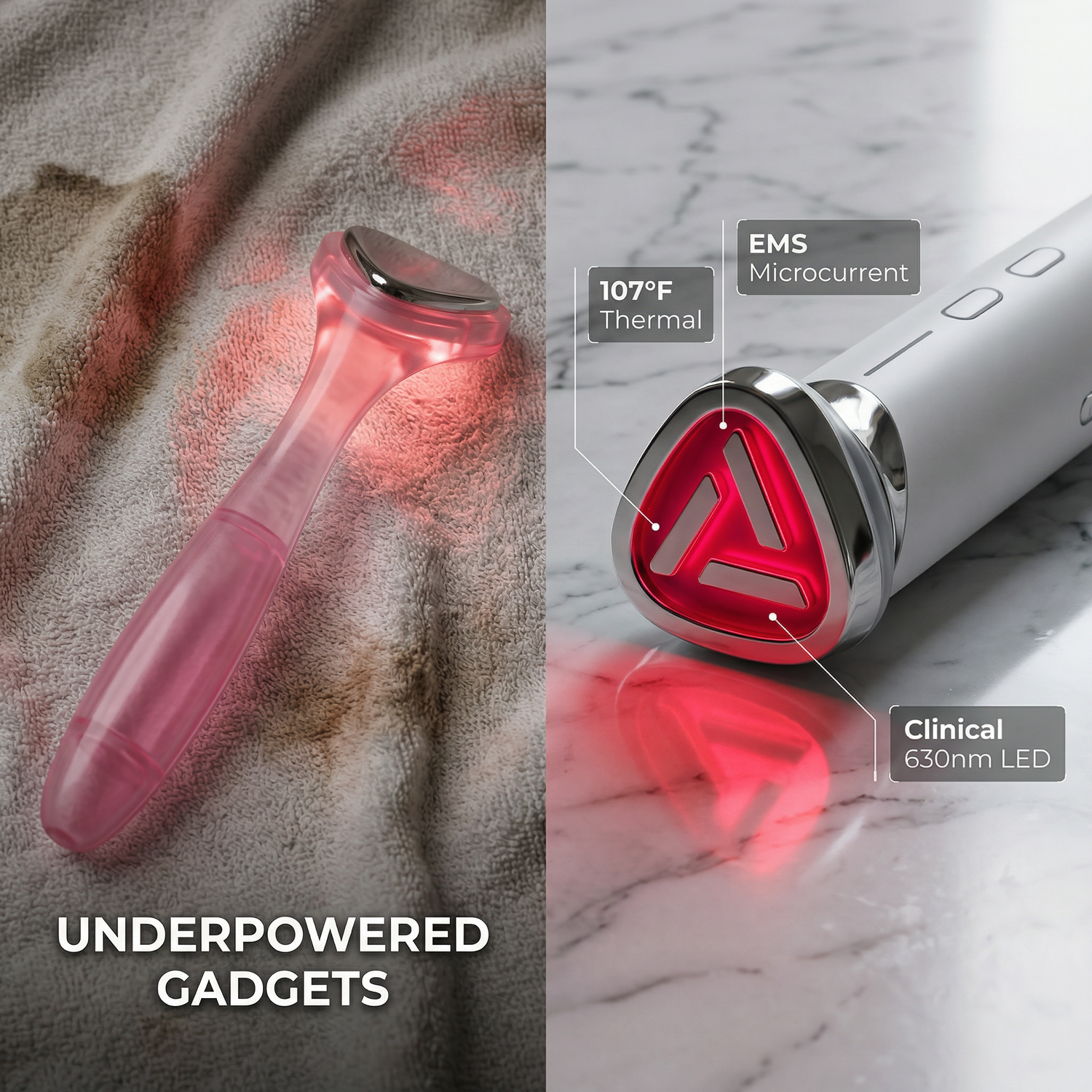 Cheap $30 plastic wands from Amazon that have the power of a Christmas tree light. Or those heavy, "Iron Man" masks that cost $500, feel like a lead weight on your face, and only offer one type of light—ignoring the fact that your skin doesn't just have one problem.